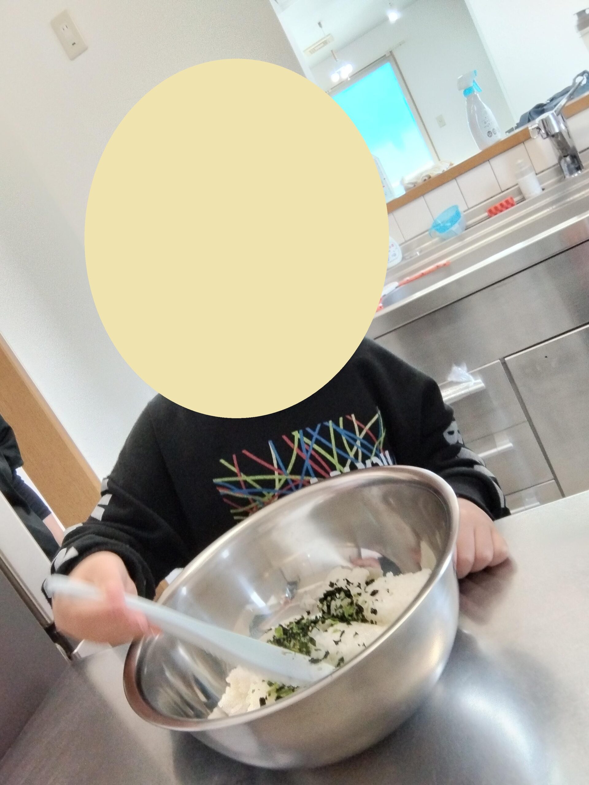肉団子を作って、わかめご飯を混ぜておにぎりを作ってくれました。