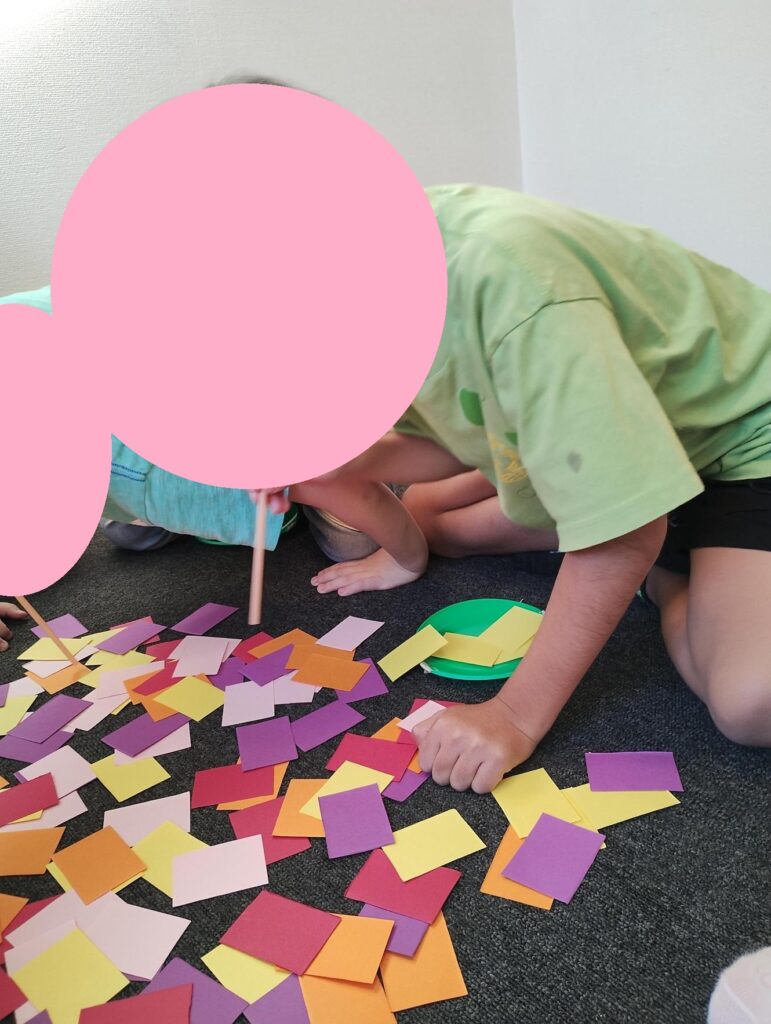 ストローゲームは、複数色の紙きれをたくさん用意します。