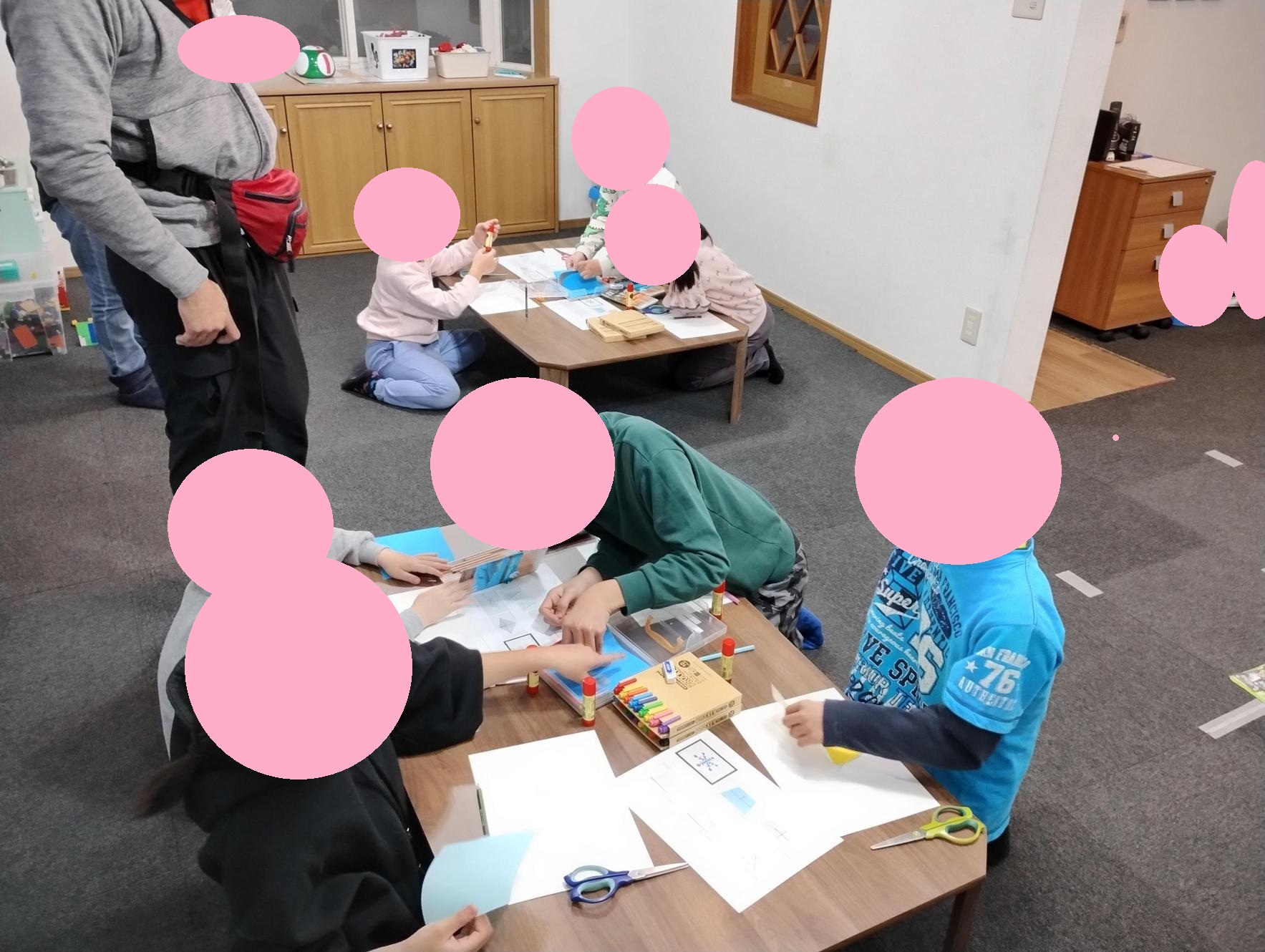 12月 17 2025 ハーモニーの楽しい毎日 切紙 昨日の活動は「描画」でした。 昨日は切紙を作り、それを画用紙に貼り1つの絵を描く事をテーマにしました。 みんな切紙には苦戦しながら、とても集中して頑張りました。 切紙がきれいに出来ると、みんな喜んでいました👌👌👌 ハーモニーの楽しい毎日 感覚統合 ルールのある遊び